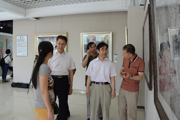 本站讯 刚刚在大学生创业孵化基地落成的我校美术馆,6月12日迎来了首展,同时大学生创业成果展览中心在此揭牌。党委书记孙文亮、院长王守伦为展览中心揭牌。党委副书记牛钟顺、副院长赵光强参观了展览。