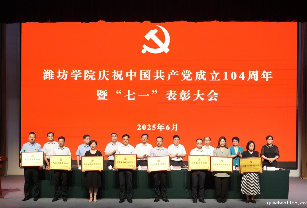 来逢波为2025年获得“光荣在党50年”纪念章的老党员代表颁发纪念章。与会领导为国家、省、校“双创”“双带头人”项目三级联创单位代表授牌,为先进基层党组织、党建业务融合示范点代表授牌,为省、市教育系统“我来讲党课”“我和我的支部”“党务工作技能大赛”等竞赛获奖代表颁奖,为“两优一先”、党员先锋和党员示范岗获奖集体个人代表颁奖。