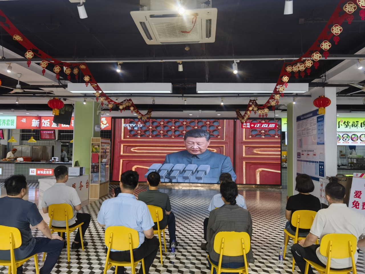 9月3日上午,纪念中国人民抗日战争暨世界反法西斯战争胜利80周年大会在北京天安门广场隆重举行,后勤服务处党委各支部组织党员干部职工收看阅兵仪式直播。