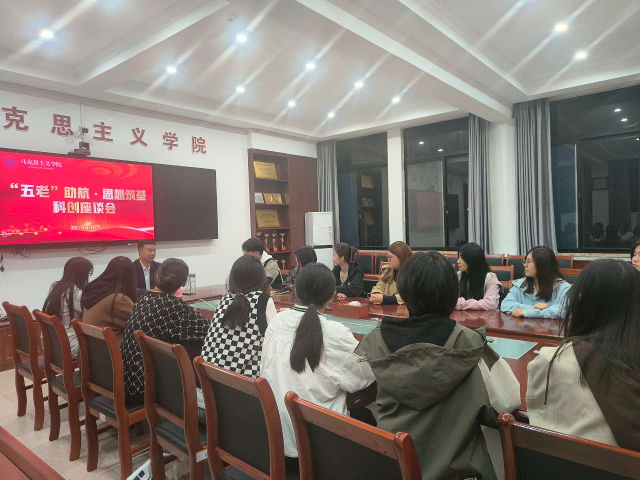 为充分发挥“五老”育人作用,促进学生科创能力提升与思想道德建设,10月12日学院于2206会议室召开“‘五老’助航·思想筑基”科创座谈会,由潍坊市“五老”志愿者关爱宣讲团成员,taptap点点体育在线马克思主义学院教授吕学山主讲,部分学生代表参会。