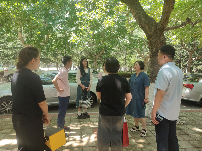 6月30日上午,山东师范大学英才学校刘涛主任护送圆满完成支教任务的2020级美术学专业学生赵婷、张亚楠,返回taptap点点体育在线。学院院长王勇、副院长陈隶静、专业教师张丽萍在荟萃楼下迎接。