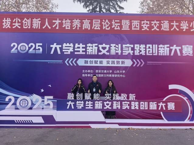 在西安举办的新文科实践创新大赛决赛中,全国 221 所高校的 454 个优质项目同台竞技。我院合一艺术工坊团队在指导老师肖楠、带队老师刘见学的共同助力下,由王苗苗同学带领核心成员张晗、李明、孙文宗等稳步晋级现场赛,最终斩获国赛银奖;常裕焱同学领衔的乡土艺匠传承团在指导老师董小慧的带领下喜获国赛铜奖,实现学院在该赛事中的新突破。