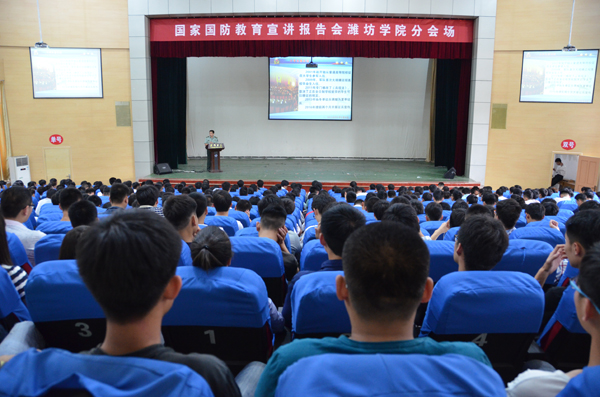 本网讯 5月26日,学校邀请国防大学教授刘玉清作国防教育报告会,潍坊军分区副政委皮先标、副校长王清明出席大会。潍坊军分区、学生工作处等相关负责同志及学生代表共同听取了报告。