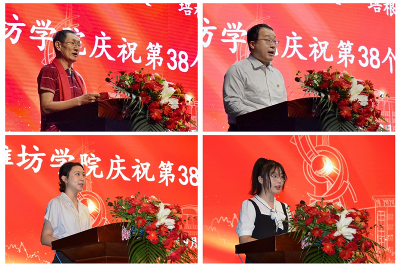 会上,荣休教师代表高延鹏、“潍院最美教师”代表韩锴、新入职教师代表高铭雪、学生代表祁瑞欣在大会上依次发言。