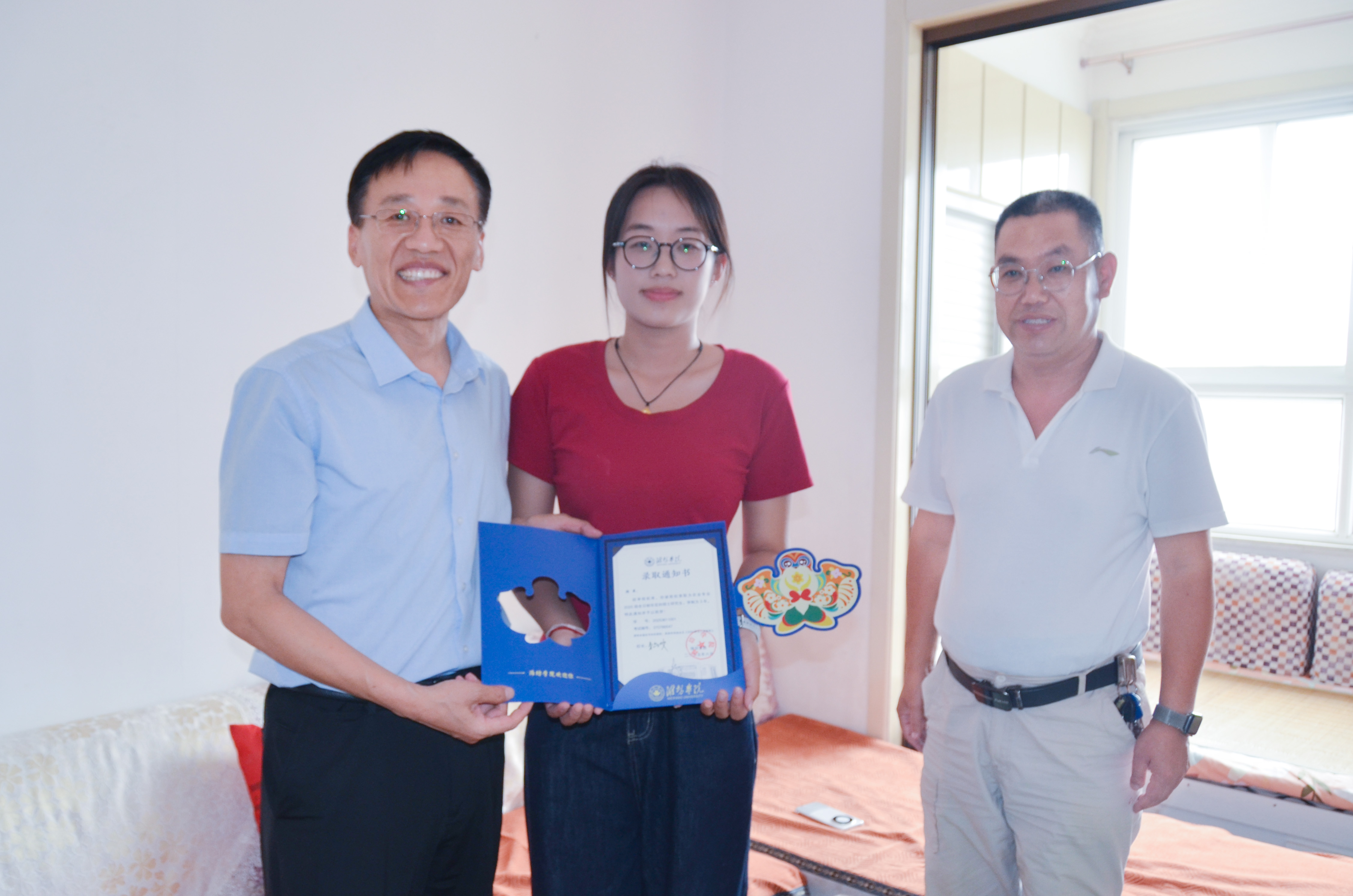 本网讯 6月25日,学校党委副书记、校长来逢波专程前往我校首届研究生韩举同学家中,送上首封硕士研究生录取通知书,并赠送经典书籍《平凡的世界》,表达对优秀学子的祝贺与期许。