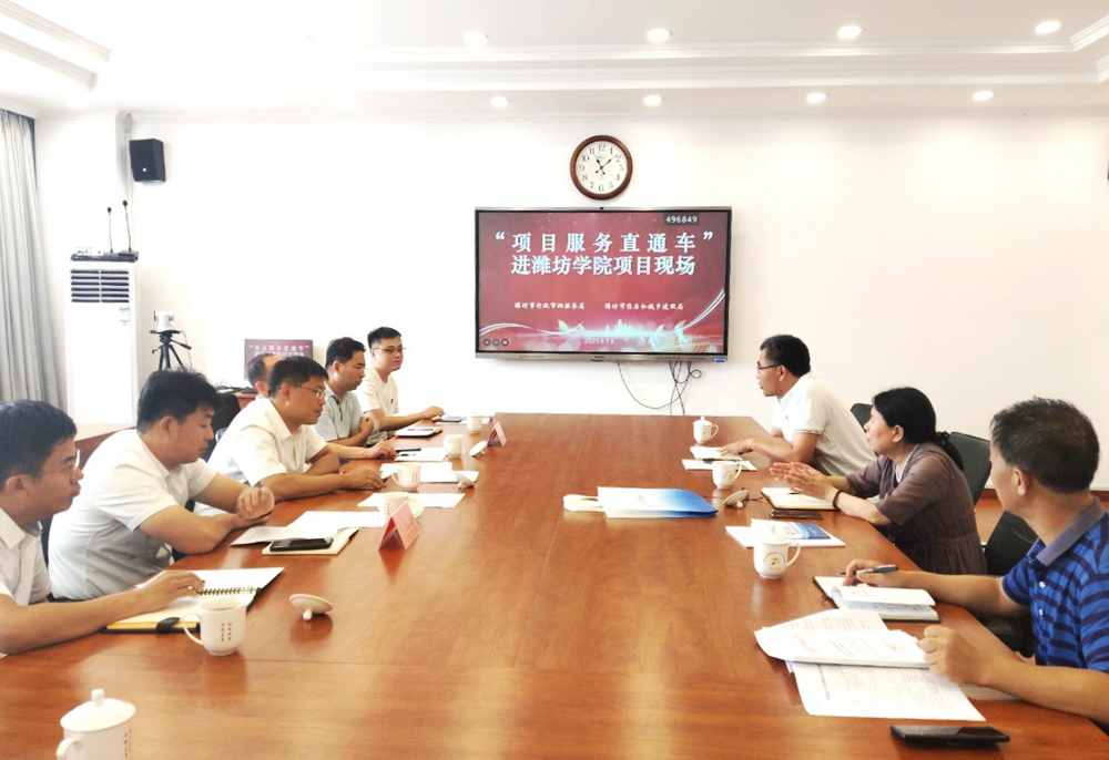 本网讯 7月8日,潍坊市行政审批服务局与住房和城乡建设局来我校,就学生公寓改造提升项目开展专项指导工作。市行政审批服务局党组成员、办公室主任翟正宏,市住房和城乡建设局科长雷常青,我校后勤服务处党委书记王海梅等参加会议。