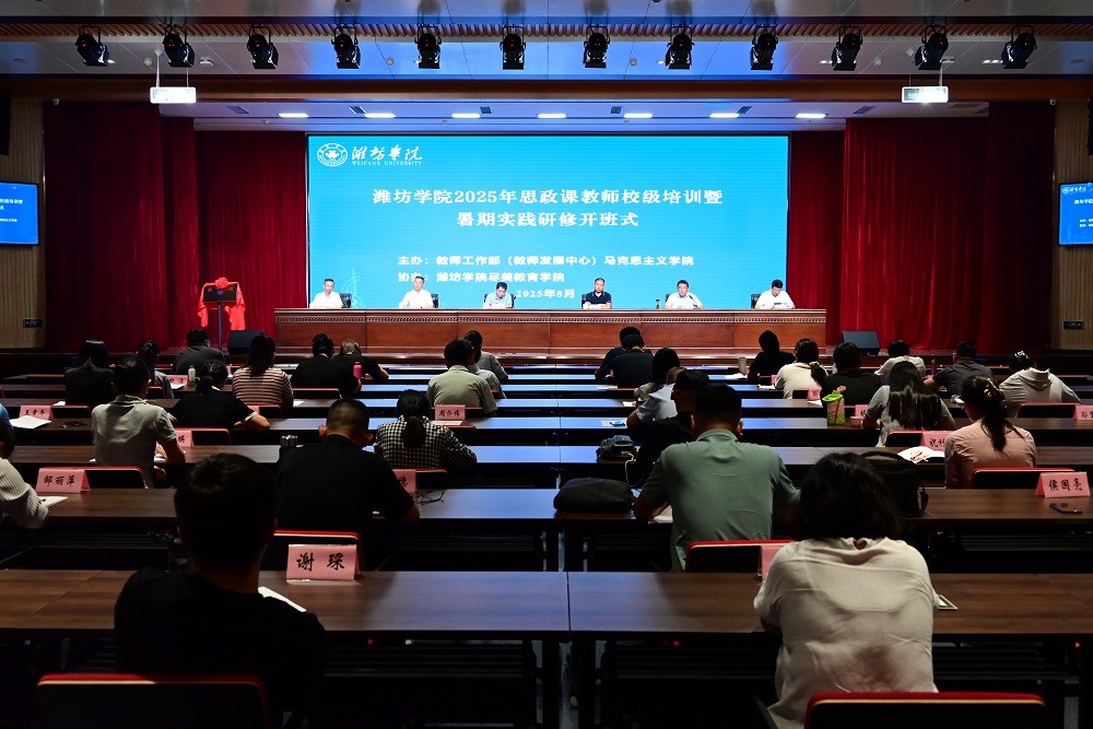 本网讯 8月4日,学校2025年思政课教师校级培训暨暑期实践研修在潍坊市王尽美革命事迹教学基地举行开班式。学校党委委员、副校长苗金春出席会议并作动员讲话。潍坊市王尽美革命事迹教学基地服务中心党委委员、副主任毛玉东、丁坤元出席开班式。