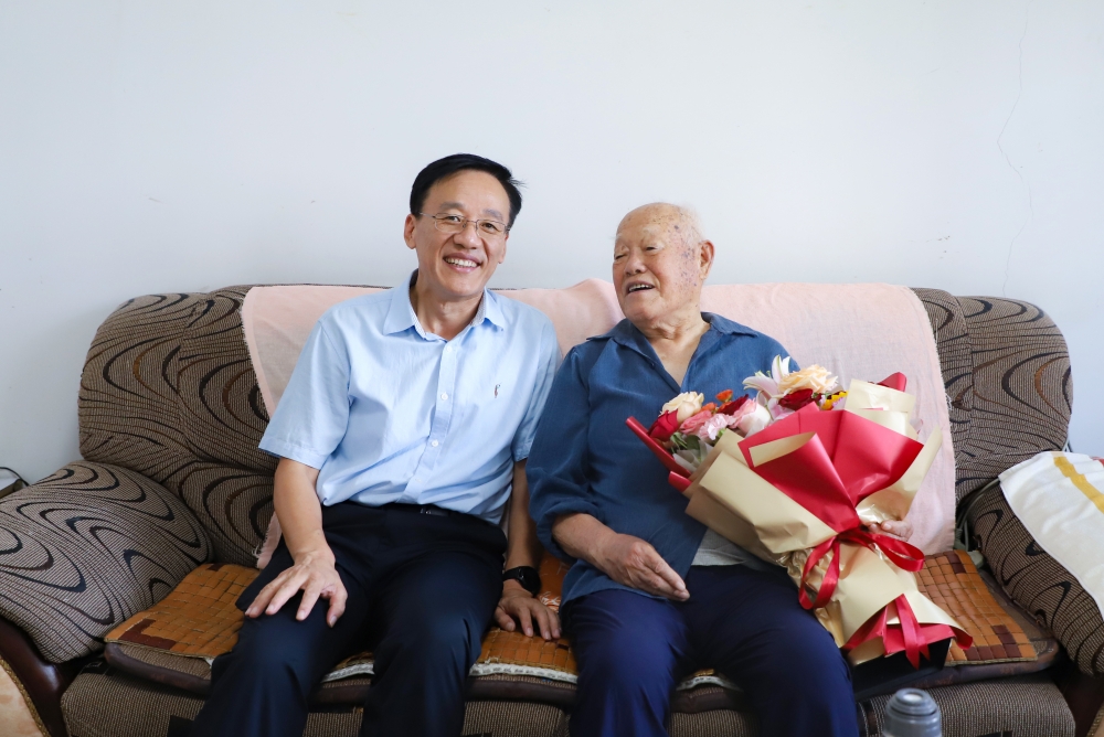 本网讯 8月26日,在纪念中国人民抗日战争暨世界反法西斯战争胜利80周年之际,学校党委副书记、校长来逢波,党委委员、副校长王成端分别走访看望离休干部,为他们送去党组织的关怀与温暖。