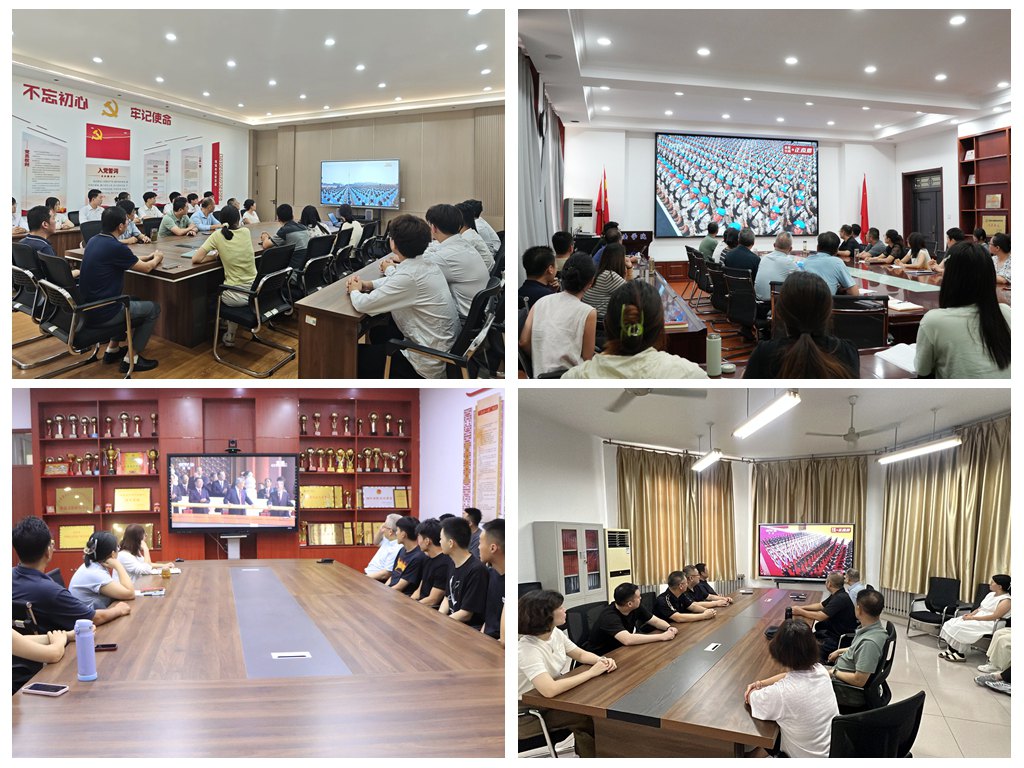 学校各党委,各单位、各部门分别在报告厅、会议室、教室、实验室等场地组织师生员工收听收看阅兵仪式直播。