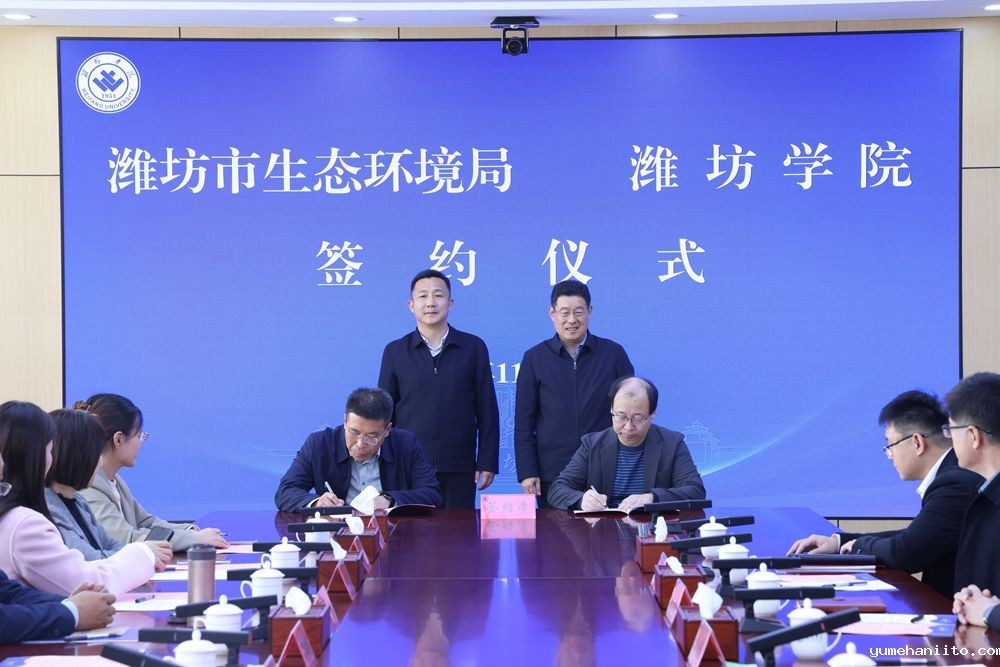本网讯 11月13日,学校与潍坊市生态环境局合作签约仪式在校举行。学校党委副书记王守全致辞,学校党委委员、副校长李英德,潍坊市生态环境局党组书记、局长邹晓东,潍坊市生态环境局党组副书记、副局长孟建明出席活动。