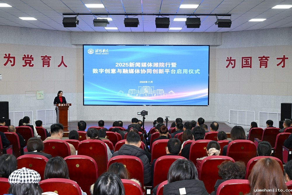 本网讯 11月18日,学校举行2025新闻媒体潍院行活动暨数字创意与融媒体协同创新平台启用仪式。学校党委书记来逢波、山东省教育厅办公室副主任诸葛佳琳出席仪式并致辞,光明日报山东记者站站长宋喜群,科技日报山东记者站站长王延斌,中国青年报山东记者站站长邢婷,山东广播电视台教育工作室主任庄红,大众日报潍坊记者站站长王佳声,潍坊市融媒体中心主任、潍坊传媒集团党委书记、董事长刘莹有,潍坊市文化和旅游局党组书记、局长高强,潍坊市新时代文明实践中心主任韩国鹏,省领导干部考试题库中心副主任崔建亮,学校党委委员、组织部部长赵加强出席活动。党委委员、宣传部部长张晓静主持活动。