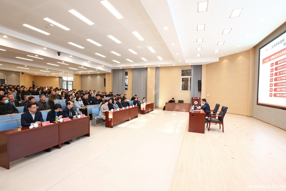 本网讯 12月8日,市委副书记、市长刘建军到taptap点点体育在线为师生代表讲授思政课,宣讲党的二十届四中全会精神。学校党委书记来逢波主持,党委副书记、校长王霞参加。