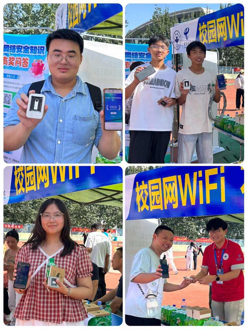 在迎新现场,网络信息中心推出网络安全知识有奖问答活动,围绕防范电信诈骗、保护个人信息等主题设置题目。学生通过关注“智慧潍苑”公众号,获取答题链接,新老同学踊跃参与,现场气氛热烈。活动累计发放定制U盘、可乐饮料等奖品800余份,同步派发《网络安全知识手册》500余册,以生动形式普及安全知识,显著提升新生网络安全意识。