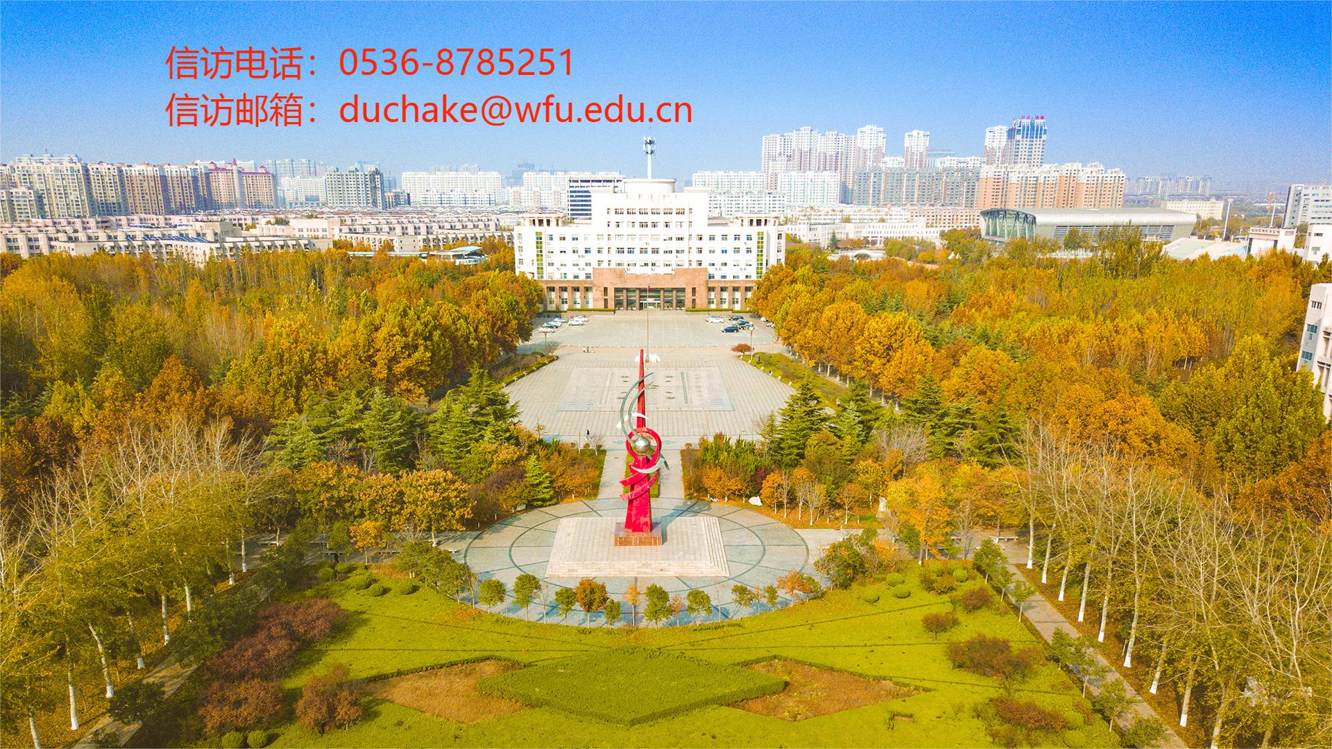 联系电话:0536-8785100 传真:8785116 邮箱:bangongshi@wfu.edu.cn