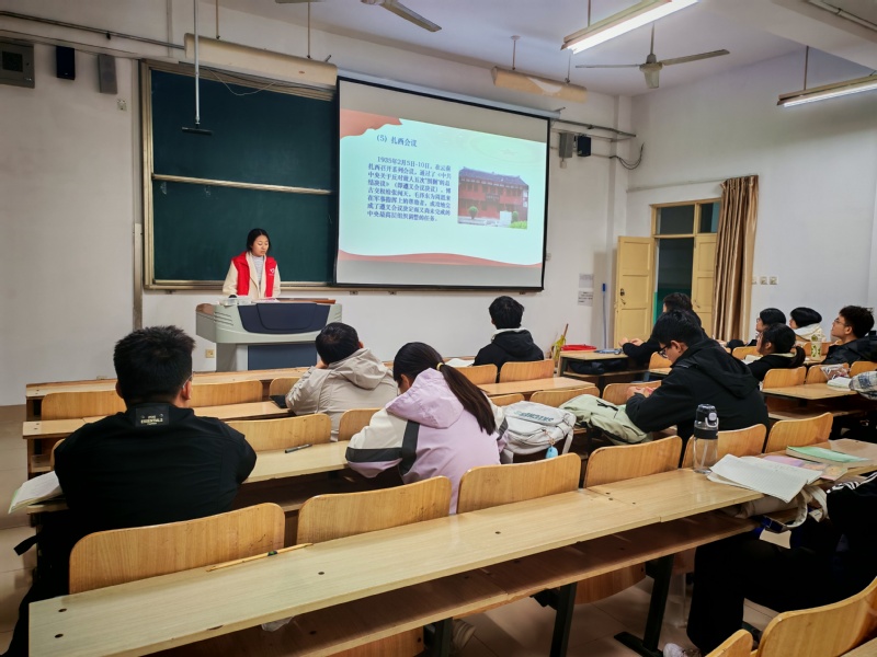 为弘扬遵义会议精神,传承红色基因,2025年10月23日,物电学院“量子”志愿服务队以“传承遵义薪火,续写时代华章”为主题在天一楼7105、7109、7110、7111等教室开展了遵义会议精神系列宣讲活动。