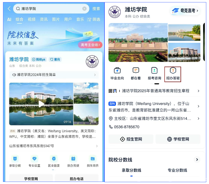咨询方式二:各位考生及家长还可以通过掌上高考、百度、今日头条、夸克等各大平台,随时随地向我校进行咨询。